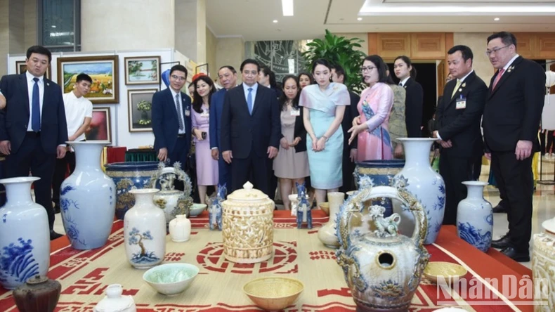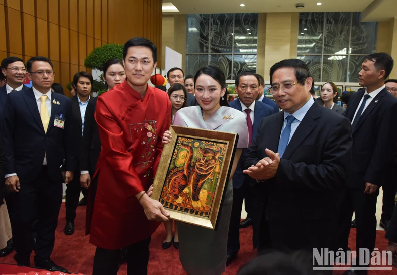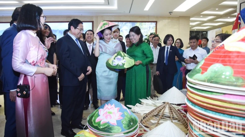 Thủ tướng Phạm Minh Chính và Thủ tướng Paetongtarn Shinawatra đã chứng kiến các nghệ nhân trình diễn, sáng tạo ra các tác phẩm thủ công mỹ nghệ, tham gia trải nghiệm ngay tại không gian triển lãm, nghe giới thiệu về các nghề thủ công mỹ nghệ đặc sắc của Việt Nam, như nghề nặn tò he, nghề làm nón lá, nghề mây tre đan, nghề gốm sứ, nghề thêu, nghề đậu bạc, nghề làm tranh dân gian, nghề sơn mài...