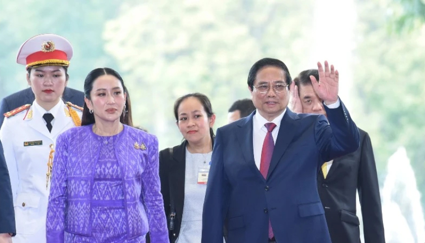 Thủ tướng Phạm Minh Chính và Thủ tướng Vương quốc Thái Lan Paetongtarn Shinawatra. (Ảnh TRẦN HẢI).