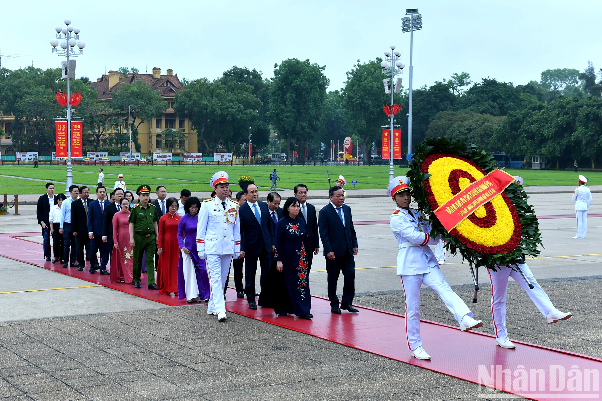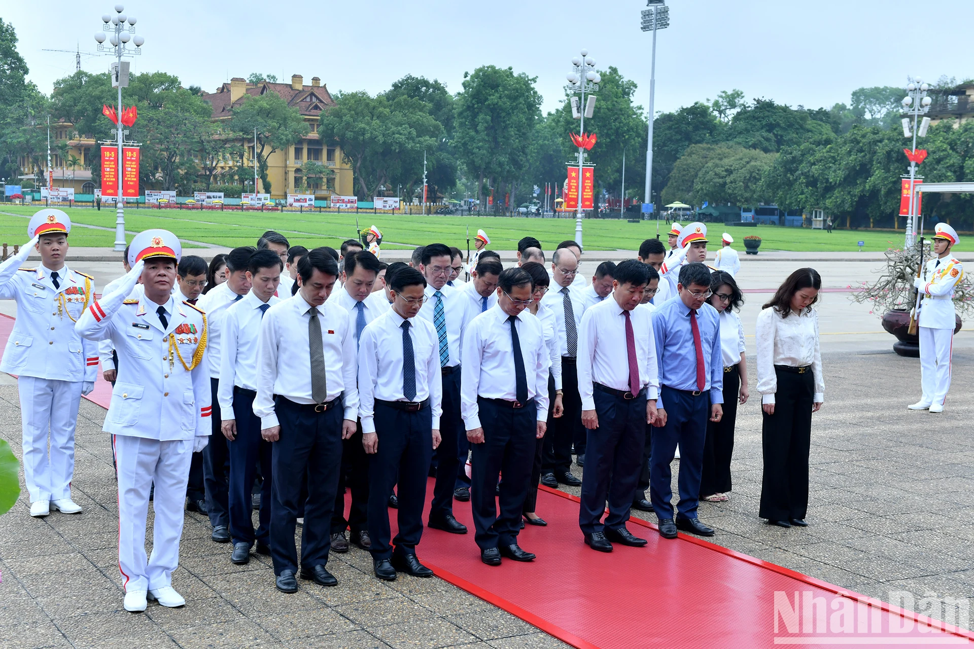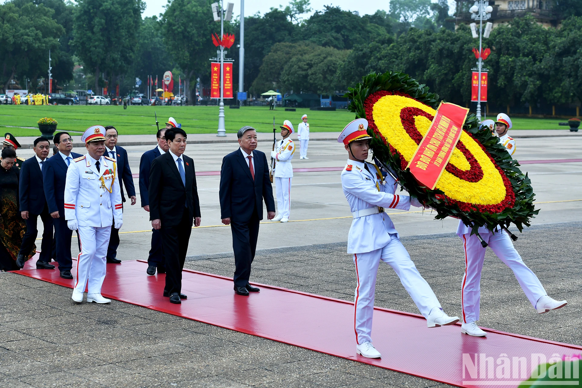 Các đồng chí lãnh đạo, nguyên lãnh đạo Đảng, Nhà nước thành kính tưởng nhớ công lao to lớn của Chủ tịch Hồ Chí Minh.