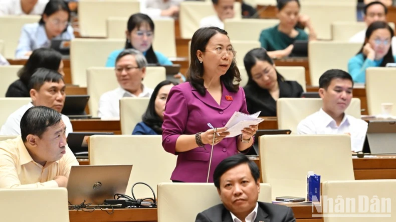 Đại biểu Phạm Thị Hồng Diễm (Trà Vinh) phát biểu. (Ảnh: THỦY NGUYÊN).