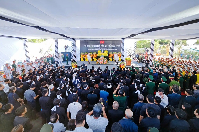 Trong niềm tiếc thương sâu sắc, các đồng chí lãnh đạo, nguyên lãnh đạo Đảng, Nhà nước, Mặt trận Tổ quốc Việt Nam, đồng chí, đồng bào và gia đình dành một phút mặc niệm vĩnh biệt đồng chí Trần Đức Lương - Nhà lãnh đạo có uy tín lớn, một tấm gương sáng về học tập, làm theo tư tưởng, đạo đức, phong cách Hồ Chí Minh, người đảng viên cộng sản kiên trung về nơi an nghỉ cuối cùng.