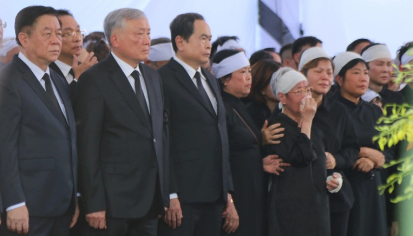 Dự Lễ an táng có các đồng chí Ủy viên Bộ Chính trị: Chủ tịch Quốc hội Trần Thanh Mẫn, Phó Thủ tướng Thường trực Chính phủ Nguyễn Hòa Bình, Bí thư Trung ương Đảng, Trưởng Ban Tuyên giáo và Dân vận Trung ương Nguyễn Trọng Nghĩa cùng các đồng chí lãnh đạo Đảng, Nhà nước, nguyên lãnh đạo Đảng, Nhà nước, Mặt trận Tổ quốc Việt Nam, các bậc lão thành cách mạng, nhân sĩ, trí thức, đại diện các cơ quan, ban, ngành, tổ chức, đoàn thể, tôn giáo, các lực lượng vũ trang và đông đảo các tầng lớp nhân dân.