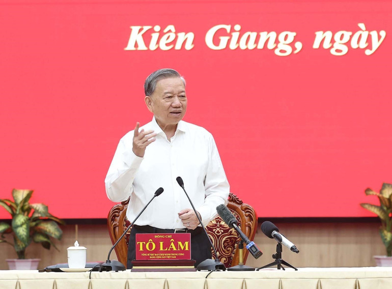 Phát biểu kết luận hội nghị, Tổng Bí thư Tô Lâm biểu dương tinh thần trách nhiệm cao và những kết quả quan trọng mà Đảng bộ, chính quyền, lực lượng vũ trang và nhân dân hai tỉnh An Giang, Kiên Giang đã đạt được trong thời gian qua.