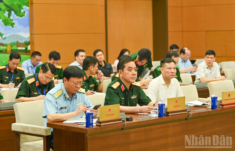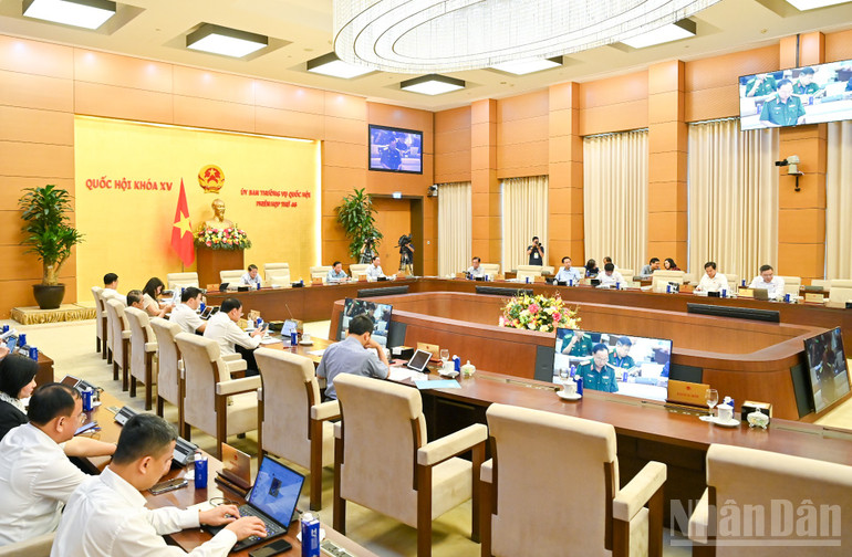 Tiếp tục Phiên họp thứ 46, sáng 5/6, Ủy ban Thường vụ Quốc hội nghe tờ trình dự án Luật sửa đổi, bổ sung một số điều của Luật Quốc phòng; Luật Sĩ quan Quân đội nhân dân Việt Nam; Luật Quân nhân chuyên nghiệp, công nhân và viên chức quốc phòng; Luật Nghĩa vụ quân sự; Luật Biên phòng Việt Nam; Luật Phòng không nhân dân; Luật Lực lượng dự bị động viên; Luật Phòng thủ dân sự; Luật Quản lý, bảo vệ công trình quốc phòng và khu quân sự; Luật Dân quân tự vệ; Luật Giáo dục quốc phòng và an ninh.