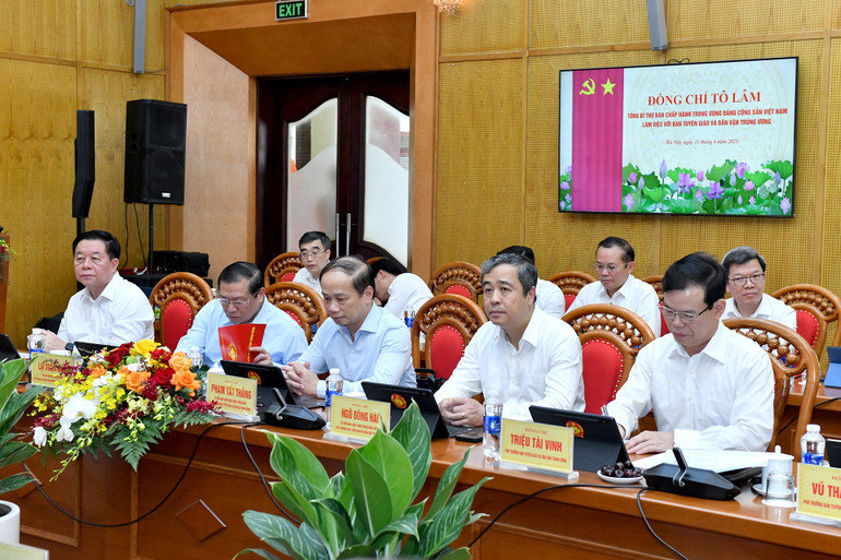 Tổng Bí thư Tô Lâm làm việc với Ban Tuyên giáo và Dân vận Trung ương