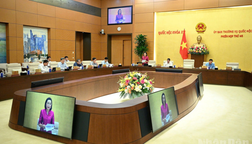 Quang cảnh phiên họp ngày 6/6 của Ủy ban Thường vụ Quốc hội cho ý kiến về dự thảo Hướng dẫn. (Ảnh: DUY LINH).
