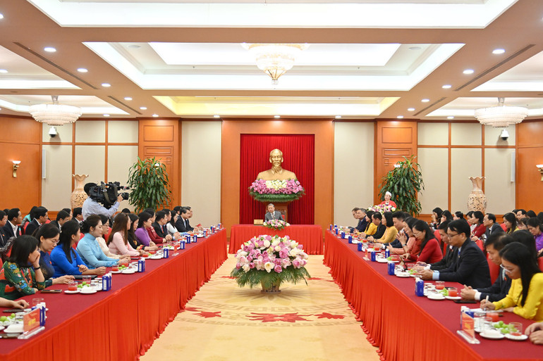 Tổng Bí thư nhấn mạnh, cả hệ thống chính trị đang ngày đêm triển khai một loạt nhiệm vụ quan trọng và cấp thiết nhằm thực hiện thắng lợi Nghị quyết Đại hội XIII của Đảng, đưa nước ta trở thành nước phát triển có thu nhập cao vào năm 2045, trong đó tập trung tiến hành điều chỉnh, cải cách tổ chức bộ máy hệ thống chính trị; sắp xếp lại đơn vị hành chính để tạo không gian phát triển. Trong tiến trình này, đại biểu Quốc hội trẻ đã và đang dấn thân, chủ động đóng góp ý kiến sửa đổi, bổ sung, xây dựng mới các bộ luật cho phù hợp với tình hình, yêu cầu, nhiệm vụ mới. Đề nghị các đại biểu tập trung cho những bước đi tiếp theo như giám sát việc thực thi nhằm tránh hình thức, tránh việc xa rời thực tế, để các điều luật đi vào cuộc sống, là cẩm nang cho nhân dân trong quá trình thực thi, chấp hành pháp luật.