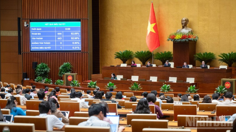 Kết quả biểu quyết điện tử cho thấy, với đa số đại biểu tham gia biểu quyết tán thành, Quốc hội đã chính thức thông qua nghị quyết kéo dài thời gian miễn thuế đất nông nghiệp.