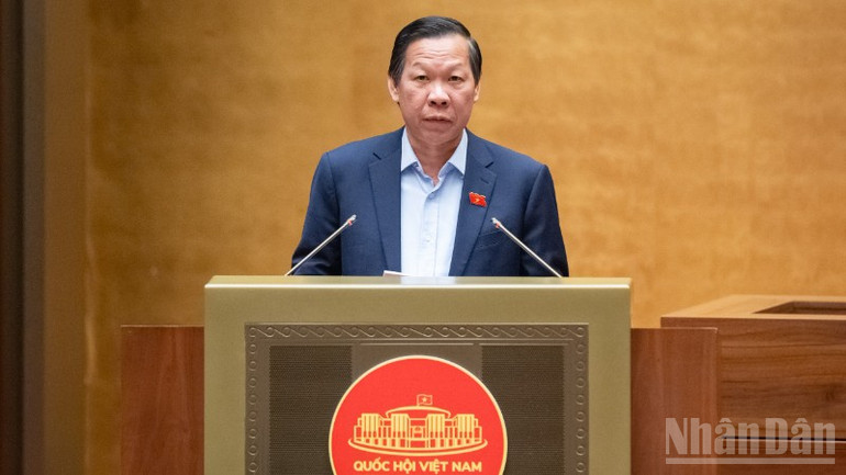 Trước khi các đại biểu tiến hành bấm nút thông qua, Chủ nhiệm Ủy ban Kinh tế và Tài chính của Quốc hội Phan Văn Mãi đã trình bày báo cáo giải trình, tiếp thu, chỉnh lý dự thảo nghị quyết.