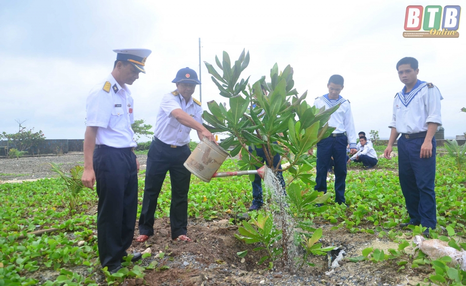 Trồng cây xanh trên đảo Trường Sa Đông.