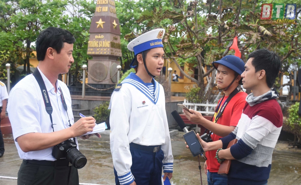 Phóng viên Báo Thái Bình tác nghiệp tại Trường Sa Đông.