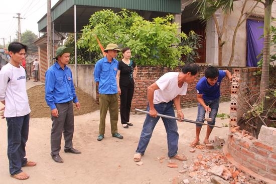 Người dân xã Xuân Hội tự phá bỏ hàng rào để mở rộng đường nông thôn mới