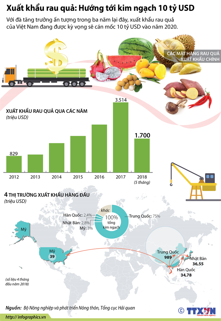 Xuất khẩu rau quả, hướng tới kim ngạch 10 tỷ USD
