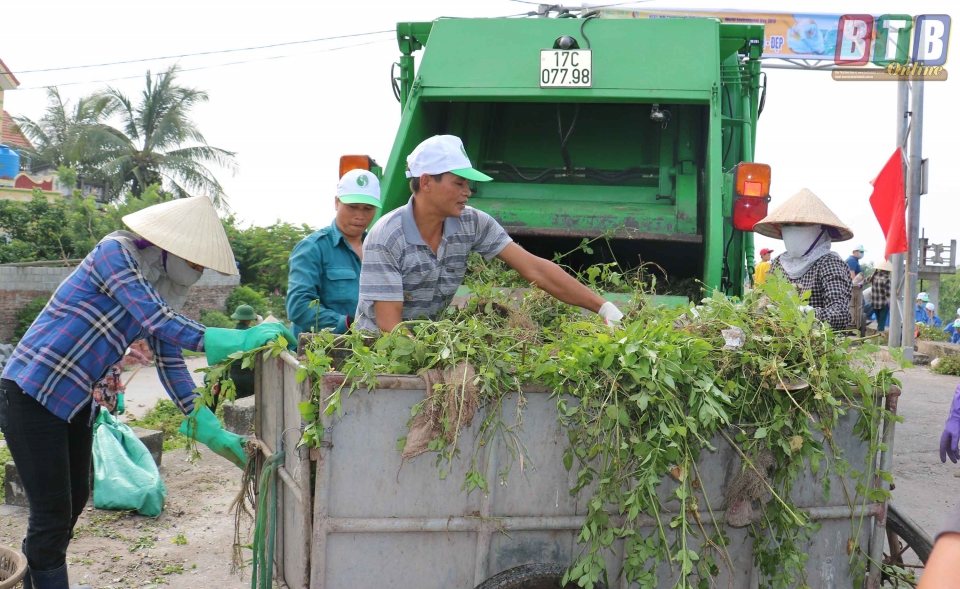 Đoàn viên thanh niên Sở TN&MT tham gia dọn vệ sinh môi trường quanh khu vực đê xã Thụy Xuân hưởng ứng ngày Môi trường thế giới.