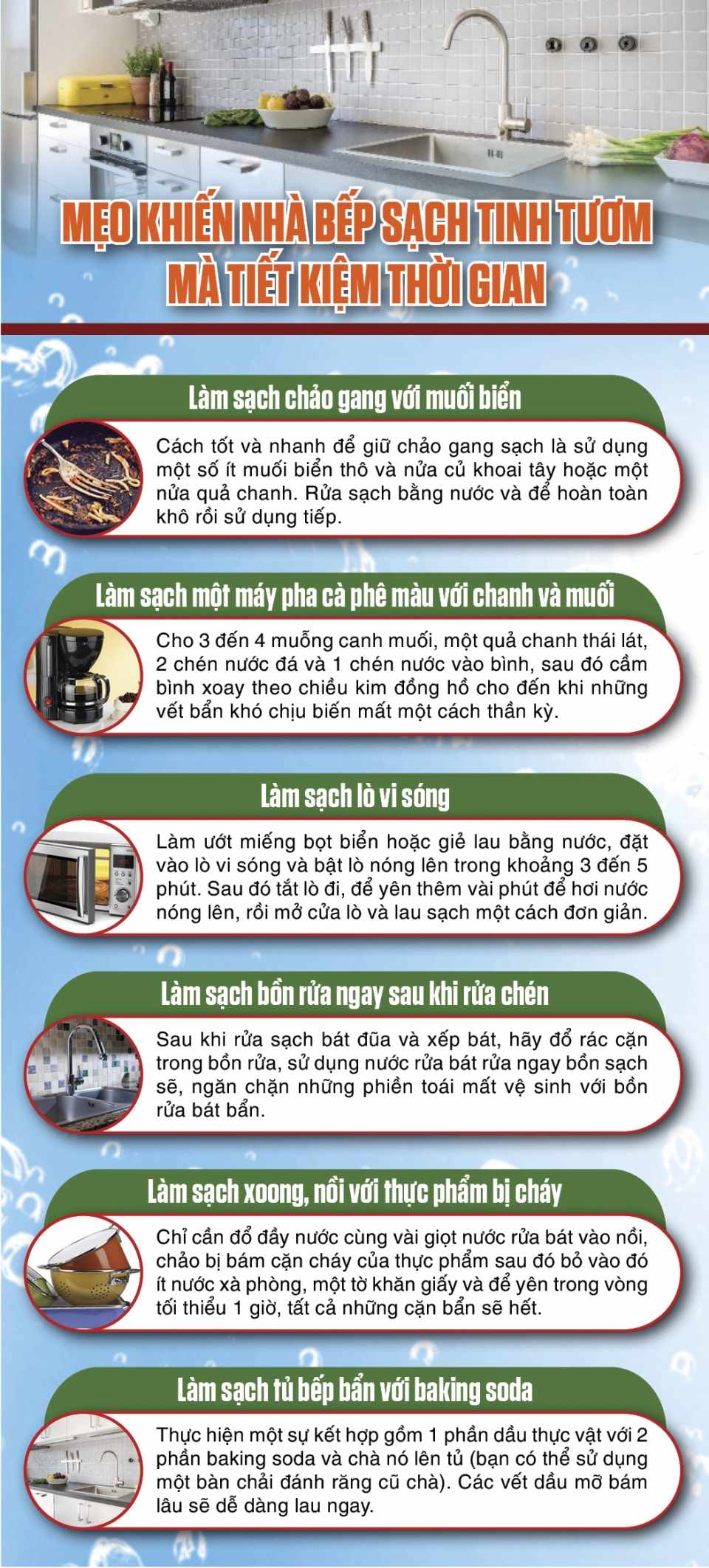 Mẹo khiến nhà bếp sạch tinh tươm mà tiết kiệm thời gian