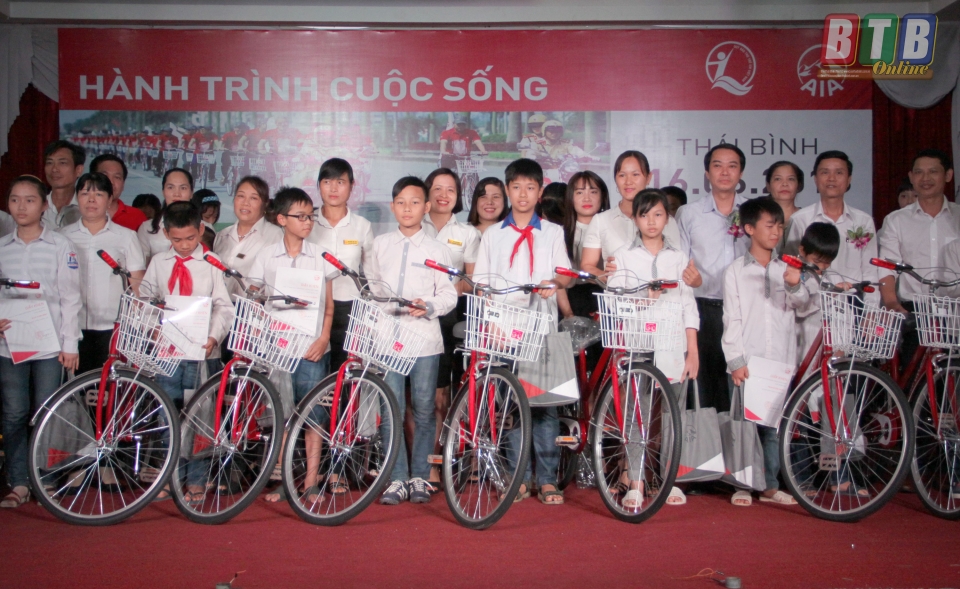 30 học sinh có hoàn cảnh khó khăn vượt khó vươn lên trong học tập thuộc 3 huyện: Hưng Hà, Thái Thụy, Quỳnh Phụ được Công ty Bảo hiểm Nhân thọ AIA Việt Nam trao 30 chiếc xe đạp với tổng trị giá 54 triệu đồng.