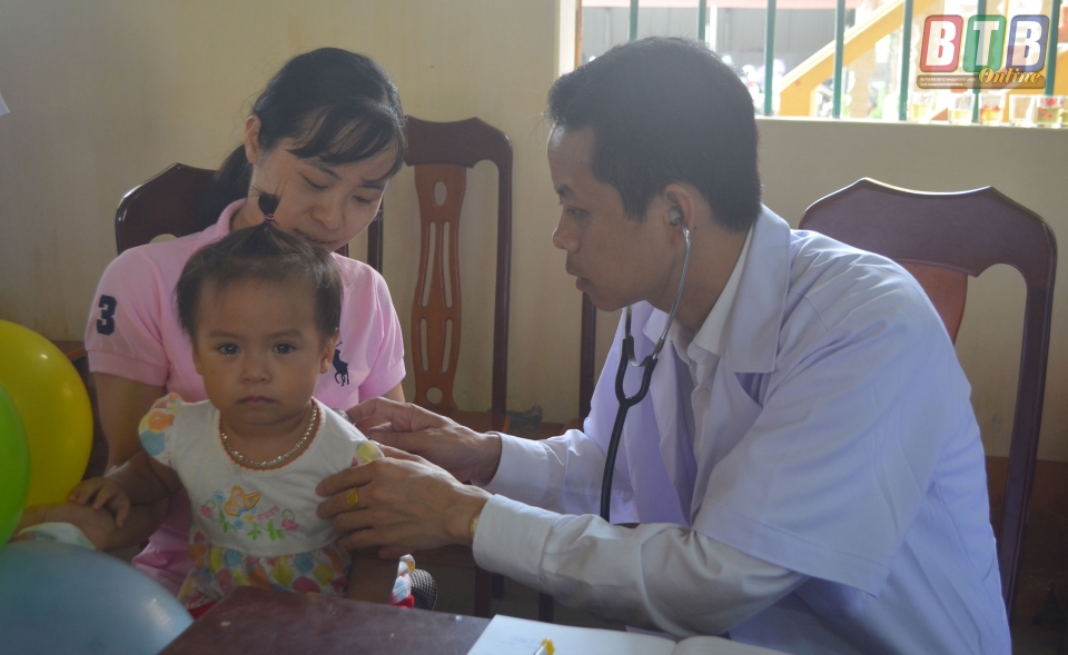 Bác sĩ Bệnh viện Nhi Thái Bình khám bệnh cho em nhỏ xã Đô Lương (Đông Hưng).