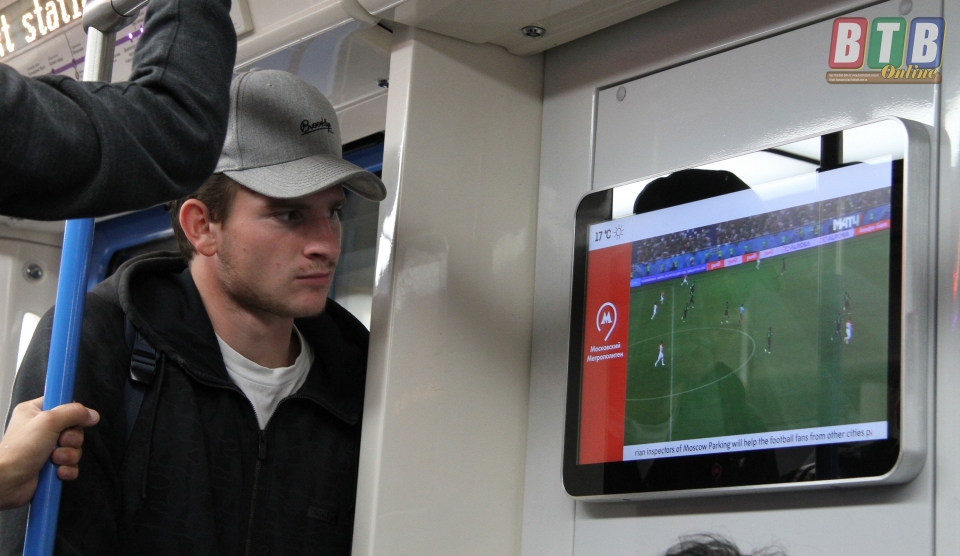 Người hâm mộ tranh thủ xem trận đấu trên tàu điện ngầm.