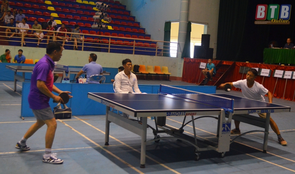 Một trận đấu trong khuôn khổ giải bóng bàn các câu lạc bộ tỉnh Thái Bình mở rộng lần thứ VI, năm 2018.