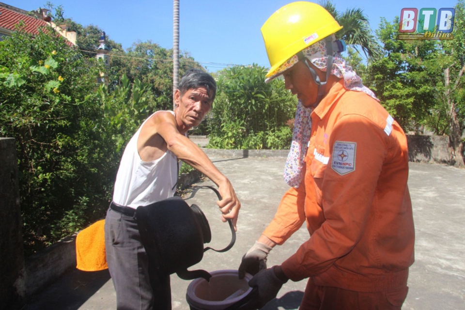 Người dân chia sẻ khó khăn,vất vả với công nhân Công ty Điện lực Thái Bình.