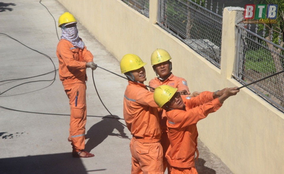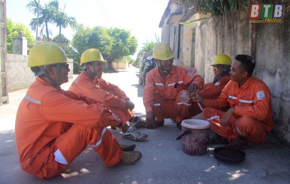 Mùa nắng nóng, có thời điểm nhiệt độ ngoài trời trên 40oC, tuy nhiên những người công nhân Công ty Điện lực Thái Bình không ngại khó khăn, vất vả vẫn ngày, đêm có mặt tại các nơi trọng điểm, sửa chữa những khiếm khuyết trên hệ thống lưới điện, cho dù mồ hôi thấm đẫm màu áo cam.