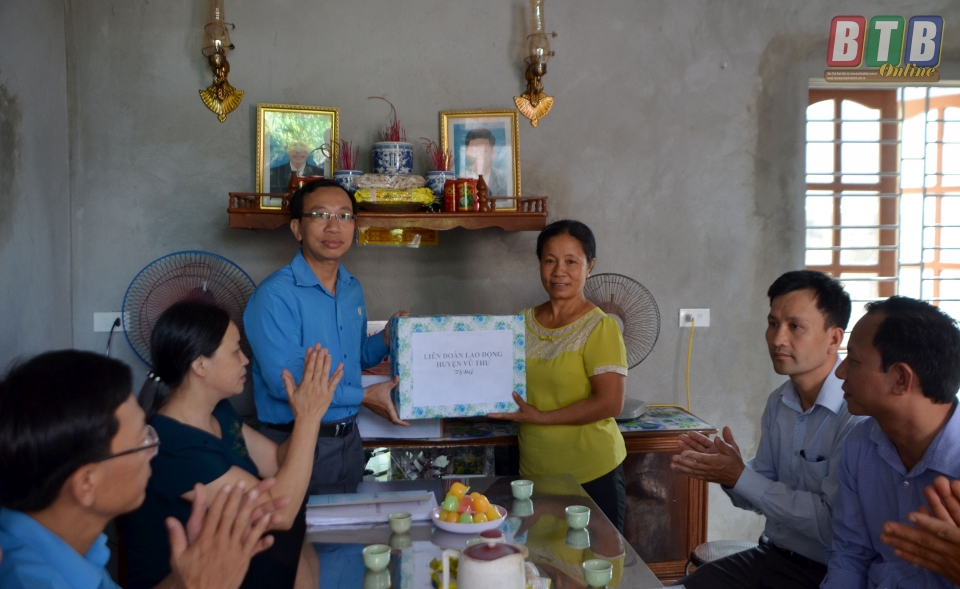Nhân dịp này, đại diện lãnh đạo Liên đoàn Lao động tỉnh, Liên đoàn Lao động huyện Vũ Thư và đơn vị 2 đoàn viên công tác, chính quyền địa phương cũng đã tặng những món quà thiết thực động viên gia đình các đoàn viên.
