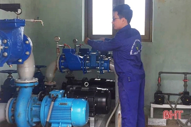 Cán bộ trung tâm vận hành hệ thống cấp nước sạch tại xã Khánh Lộc, huyện Can Lộc