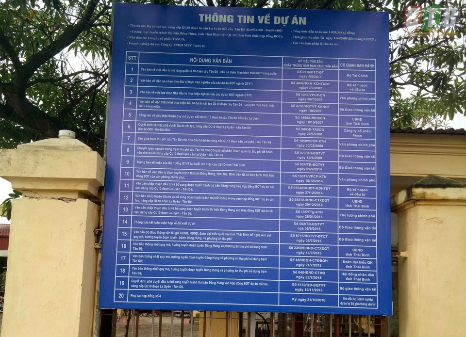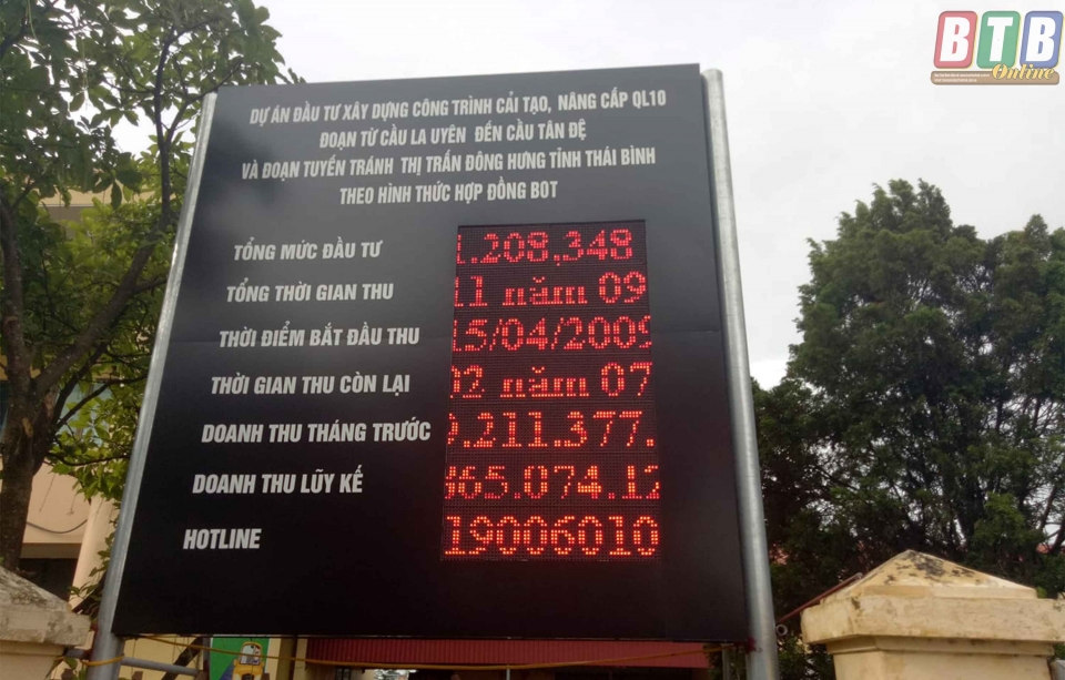 Thông tin về Dự án QL10 được công khai tại trạm thu phí Tân Đệ