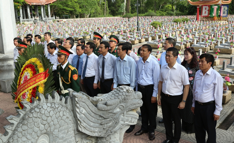Các đồng chí lãnh đạo tỉnh dâng hương tưởng niệm các anh hùng liệt sĩ tại Nghĩa trang Liệt sỹ quốc gia Đường 9, tỉnh Quảng Trị.