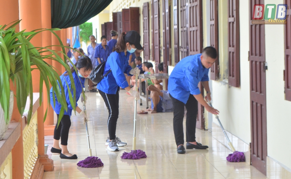 Đoàn viên thanh niên quét dọn tại Trung tâm Chăm sóc và phục hồi chức năng cho người tâm thần.
