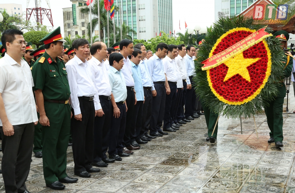 Tại Đền thờ Liệt sĩ tỉnh, các đồng chí lãnh đạo tỉnh và các đại biểu đã đặt vòng hoa, dành một phút mặc niệm, tưởng nhớ những người con ưu tú của quê hương đã anh dũng chiến đấu và hy sinh vì sự nghiệp đấu tranh giải phóng dân tộc, vì nền độc lập, tự do của Tổ quốc, vì hạnh phúc của nhân dân. Vòng hoa của Tỉnh ủy, HĐND, UBND, Ủy ban MTTQ tỉnh mang dòng chữ "Đời đời ghi nhớ công ơn các anh hùng liệt sĩ”.