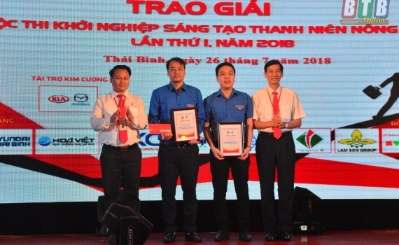 Trao giải nhất cuộc thi ý tưởng khởi nghiệp sáng tạo thanh niên nông thôn lần thứ nhất năm 2018 cho Hợp tác xã thanh niên thành phố Thái Bình.