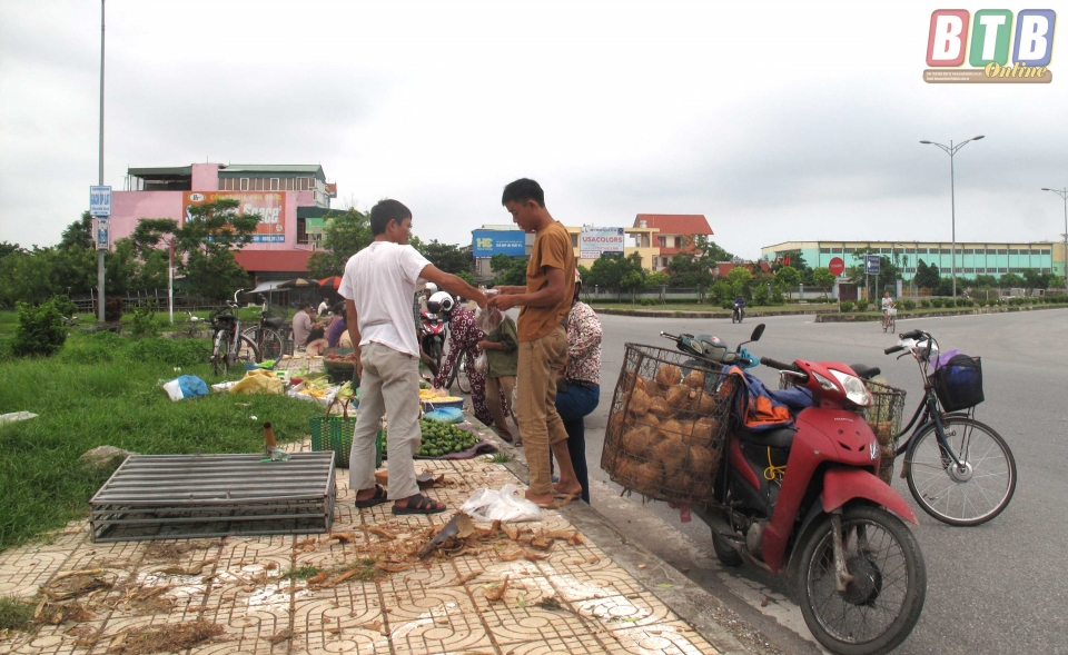 Ngã tư phố Lý Bôn giao với đường tránh phía Nam thành phố đoạn qua địa phận xã Vũ Chính trở thành nơi bán hàng.