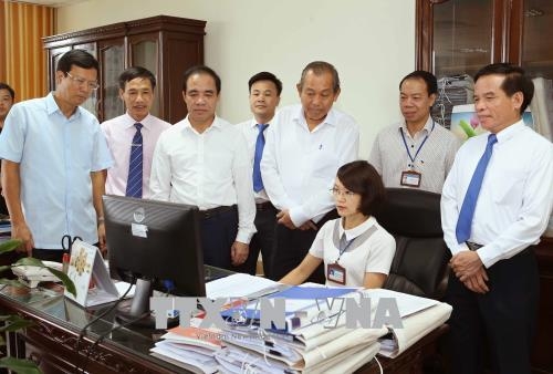 Phó Thủ tướng Thường trực Chính phủ Trương Hòa Bình thăm Bộ phận quản lý thuế qua mạng của Cục thuế tỉnh Tuyên Quang. Ảnh: Doãn Tấn – TTXVN