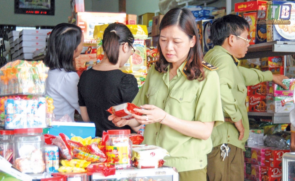 Đội Quản lý thị trường số 6, huyện Kiến Xương kiểm tra chuyên đề các mặt hàng thực phẩm.