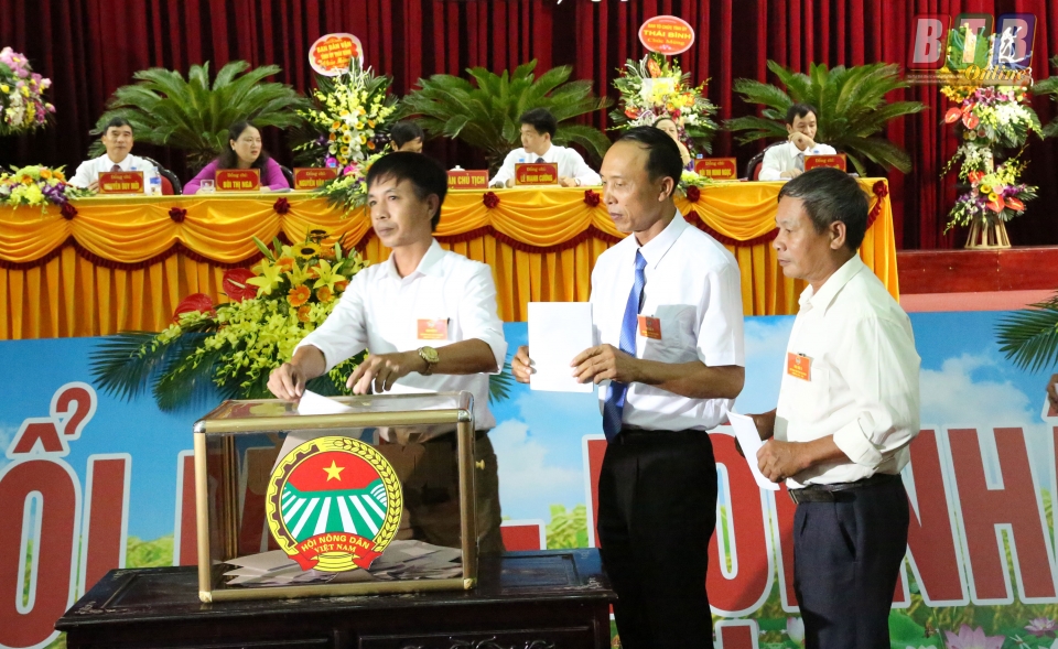 Đại biểu bỏ phiếu bầu Ban Chấp hành Hội Nông dân tỉnh khóa X, nhiệm kỳ 2018-2023 . Ảnh: Thành Tâm