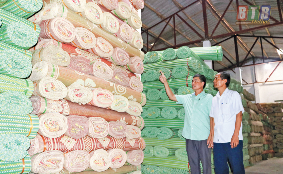 Cơ sở sản xuất chiếu Thuận Hòa (thôn Quan Khê, xã Tân Lễ) tồn kho hơn 37.500 chiếc chiếu cói và chiếu nilon trị giá hơn 1,7 tỷ đồng.