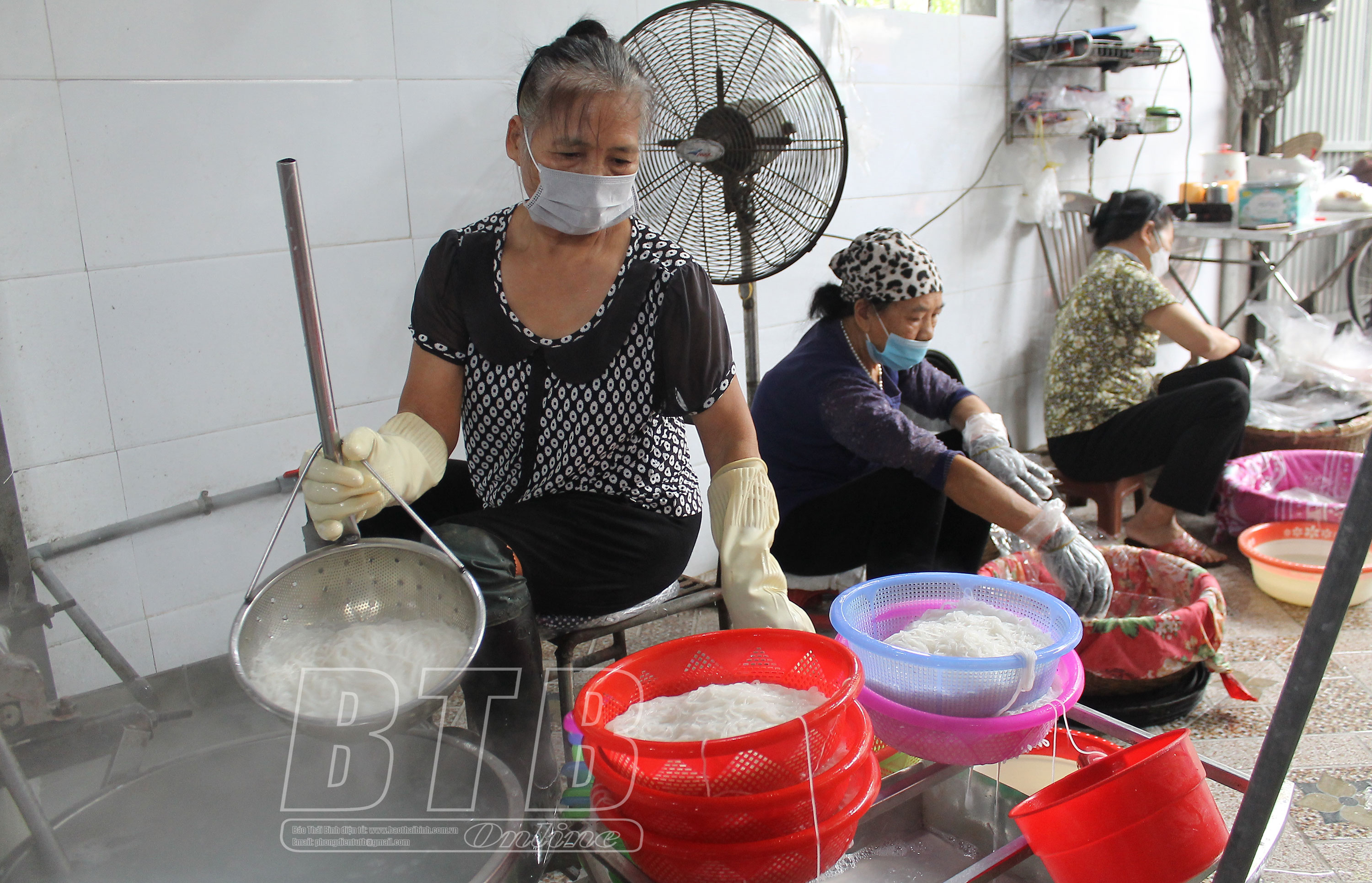 Trước kia, gia đình ông Mai Huy Hạnh, thôn Bình An, xã Vũ Hội thường sản xuất 1 tấn bún mỗi ngày. Tuy nhiên, do ảnh hưởng của dịch Covid-19, mấy tháng qua gia đình ông chỉ hoạt động 50 - 60% công suất, thu nhập của gia đình ông và 15 lao động đều giảm sâu. Ngay khi làn sóng dịch Covid-19 thứ tư tạm thời lắng xuống, gia đình ông nhanh chóng bắt tay khôi phục sản xuất.