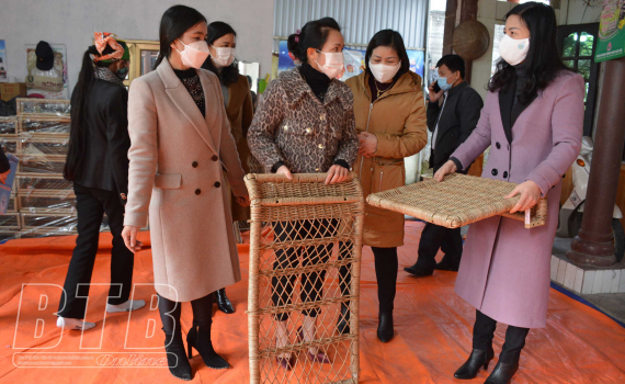 Lãnh đạo Hội Liên hiệp Phụ nữ tỉnh, thành phố Thái Bình thăm Tổ hợp tác đan ghế nhựa xã Vũ Đông.