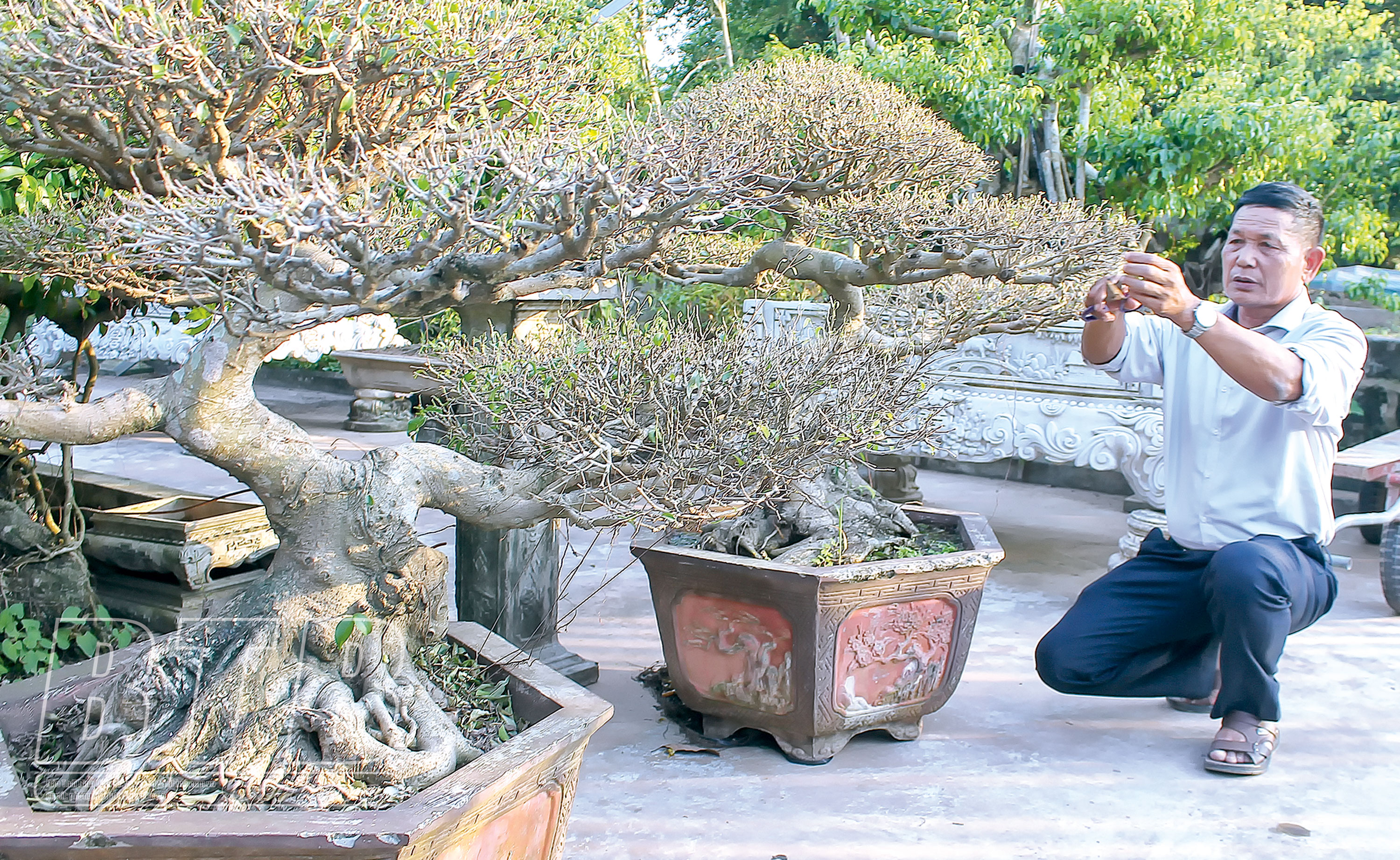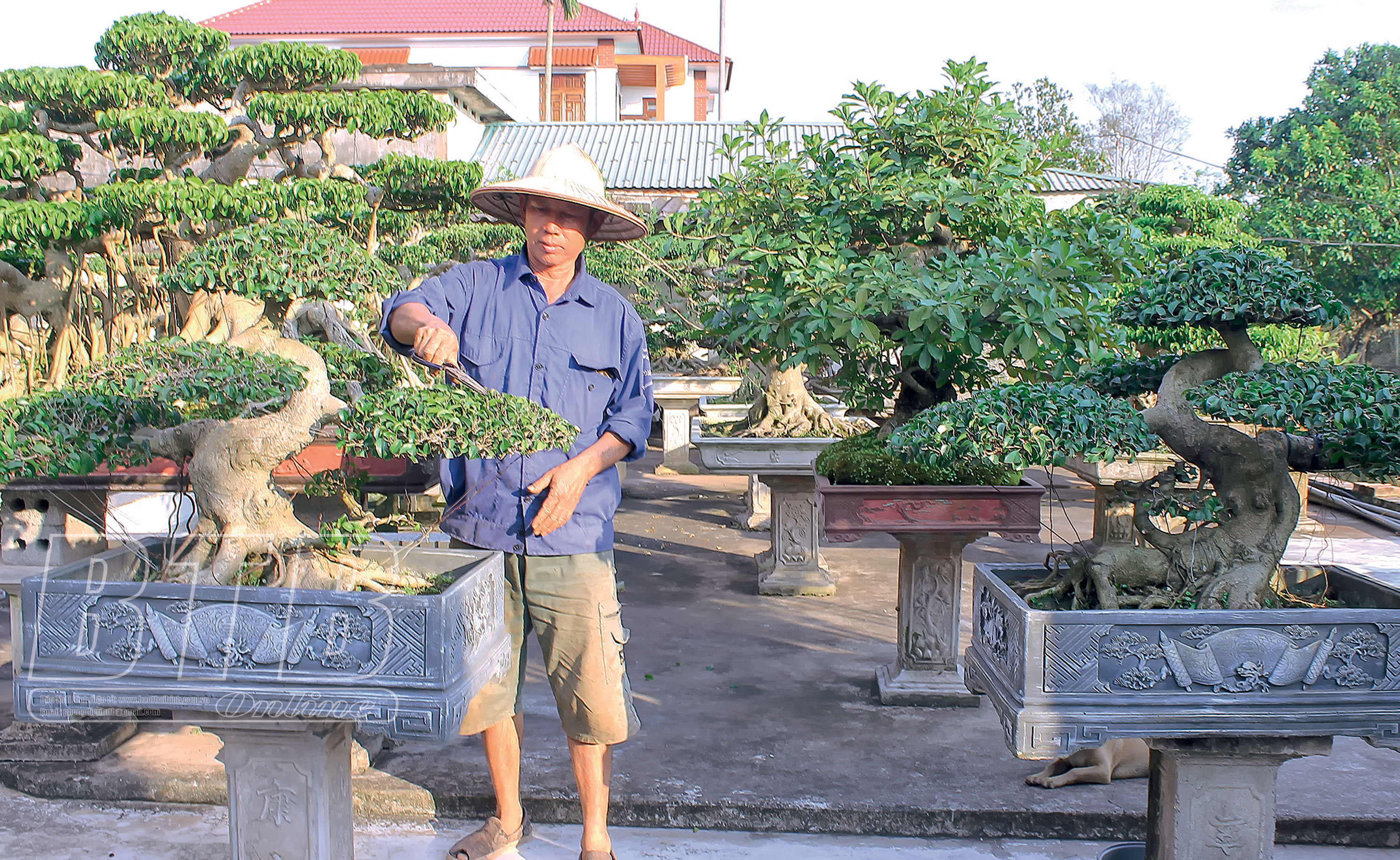 Gia đình ông Trần Văn Dũng, Trưởng thôn Phù Sa cũng khấm khá lên nhờ nghề trồng gắn với kinh doanh cây cảnh. Ông Dũng chia sẻ, năm 2003, gia đình ông mạnh dạn chuyển đổi ruộng cấy lúa kém hiệu quả sang trồng cây cảnh. Hiện tại gia đình ông trồng 1,5 mẫu cây cảnh gồm sanh, la hán, mộc, trà, lộc vừng, hoa hồng… Ngoài cây hàng chợ, ông thường tìm mua cây thô, lâu năm tuổi, qua bàn tay khéo léo uốn tỉa và đầu tư chăm sóc công phu của ông, sau 5 - 7 năm giá trị của cây có thể lên gấp chục lần so với ban đầu. Từ đầu năm 2022 đến nay, gia đình ông Dũng có nguồn thu gần 400 triệu đồng từ xuất bán cây cảnh, dự kiến sẽ tiếp tục tăng vào dịp cuối năm.