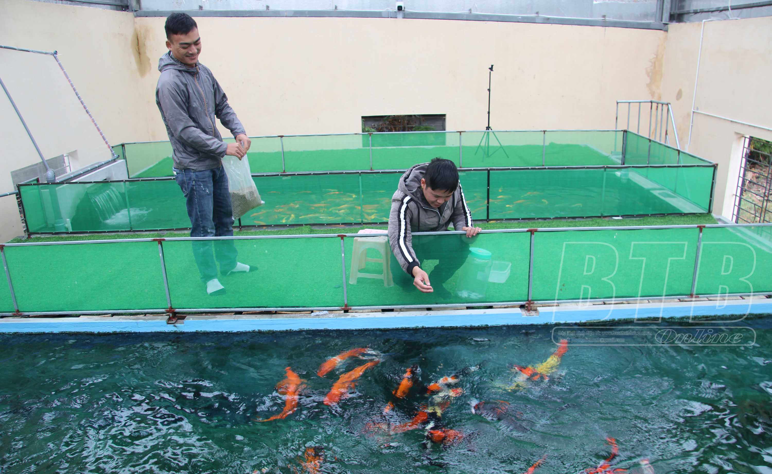 Anh Sơn cho biết thêm: Để cung cấp ra thị trường giống cá Koi đạt chất lượng, tôi đã liên hệ trực tiếp các trại cá Koi bên Nhật Bản để chọn cá giống nhập về Việt Nam. Tuy nhiên, cá Koi cần môi trường nước sạch, do đó đây cũng là một nghề được xem là khá rủi ro. Vì là lần đầu thử sức với nghề nuôi cá Koi nên tôi chỉ dám nhập về hơn 800 con cá Koi giống và xây dựng 5 bể nuôi với tổng chi phí ban đầu trên 1,5 tỷ đồng. Để việc mua bán được thuận lợi, nhanh chóng, tôi tạo một trang web với tên gọi Tiền Hải Koi Farm, đăng tải đầy đủ hình ảnh, nguồn gốc, màu sắc, kích thước, giá cả của cá để khách hàng có thể tự do chiêm ngưỡng và dễ dàng lựa chọn. Sau khi đăng tải thông tin đến nay trang trại cá Koi đã có lượng khách trong và ngoài tỉnh quan tâm.