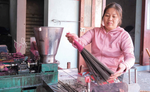 Làm hương bằng máy năng suất cao gấp 4 - 5 lần làm thủ công.