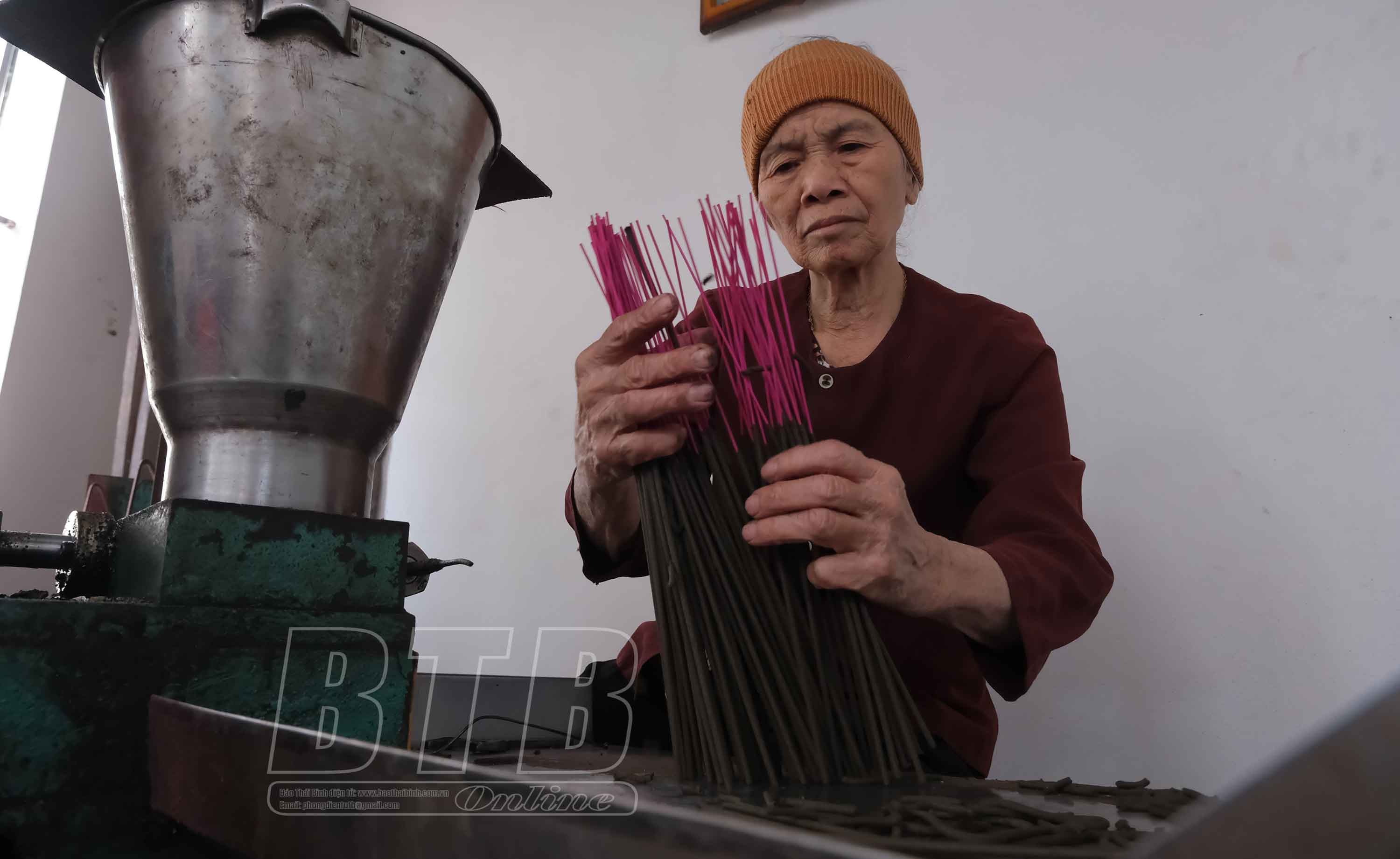 Người cao tuổi làng Hồng Phong gắn bó với nghề làm hương truyền thống.