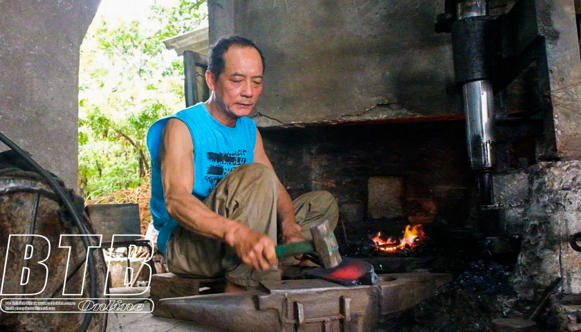 Ông Lê Văn Chen, thôn An Tiêm 1, xã Thuỵ Dân (Thái Thụy) gắn bó với nghề rèn truyền thống hơn 50 năm. Ảnh Triệu Nguyễn