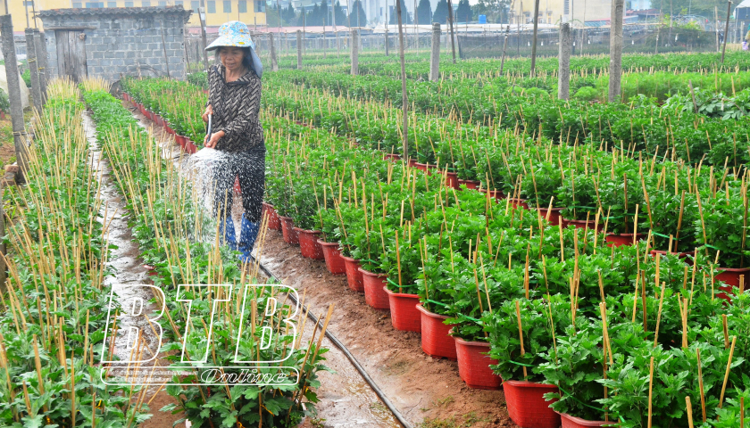 Theo ông Phan Văn Sửu, thôn Tống Văn: Để có được ruộng hoa đẹp nở đúng dịp tết, người trồng phải chăm chút kỹ lưỡng từng công đoạn, từ việc ươm cây, vun tưới, bón phân, cắm cọc, tỉa nụ, phòng bệnh... Không chỉ vậy, còn phải thường xuyên theo dõi thời tiết để có biện pháp kỹ thuật che chắn, chong đèn tạo ánh sáng điều tiết cho cây ra hoa đúng dịp. Đối với hoa cúc, thời gian sinh trưởng thường 4 - 5 tháng. Do vậy, từ giữa tháng 9 gia đình tôi đã xuống giống. Thời gian này, tôi bắt đầu bấm tỉa nụ, chỉ giữ lại nụ chính để tập trung dinh dưỡng nuôi hoa. Giai đoạn này cũng cần đặc biệt chú ý đến sâu bệnh để có biện pháp chủ động phun phòng, trừ, nhất là bệnh nấm. Tuy vất vả nhưng nghề trồng hoa mang lại hiệu quả kinh tế cao hơn nhiều lần cấy lúa nên gia đình tôi đã gắn bó trên 20 năm nay.