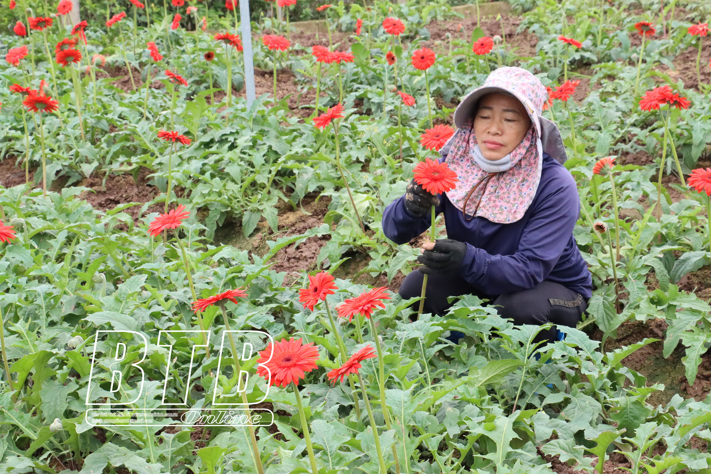 Bà Nguyễn Thị Miên chia sẻ: Trong năm gia đình trồng 2 đợt hoa đồng tiền, đợt trồng tháng 6 đã bán hết, đợt trồng tháng 8 đang bán. Hoa đồng tiền đẹp, chơi được lâu nhưng cây đồng tiền khó tính, chăm sóc vất vả, sương muối mưa nhiều, rét quá cây đều hỏng. Vì thế, tháng 6 năm nay gia đình đã đầu tư 50 triệu đồng lắp hệ thống giàn khung phủ lưới để che mưa, che nắng và sương cho hoa, đầu tư cả hệ thống tưới tự động giảm công lao động, tưới đều hơn. Mỗi tháng chăm bón cho vườn hoa đồng tiền 1 lần sẽ đủ chất dinh dưỡng, cây khỏe, cho hoa đẹp. Không chỉ trồng nhiều hoa đồng tiền nhất xã, gia đình bà Miên còn cung cấp hàng chục vạn cây giống đồng tiền chất lượng cho bà con trong và ngoài xã. Đó cũng chính là loại cây giúp gia đình bà Miên thoát nghèo vươn lên trở thành hộ giàu của xã.