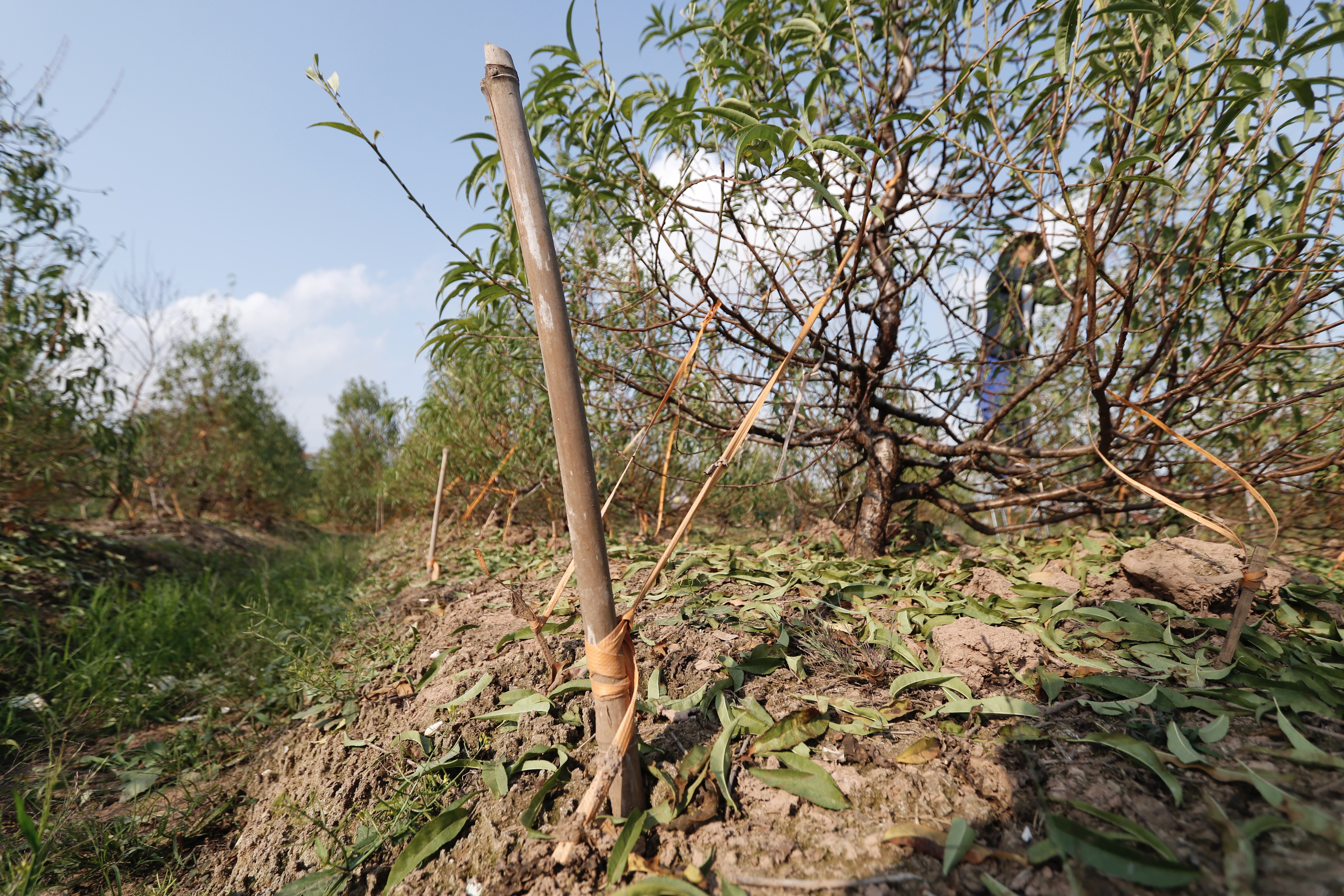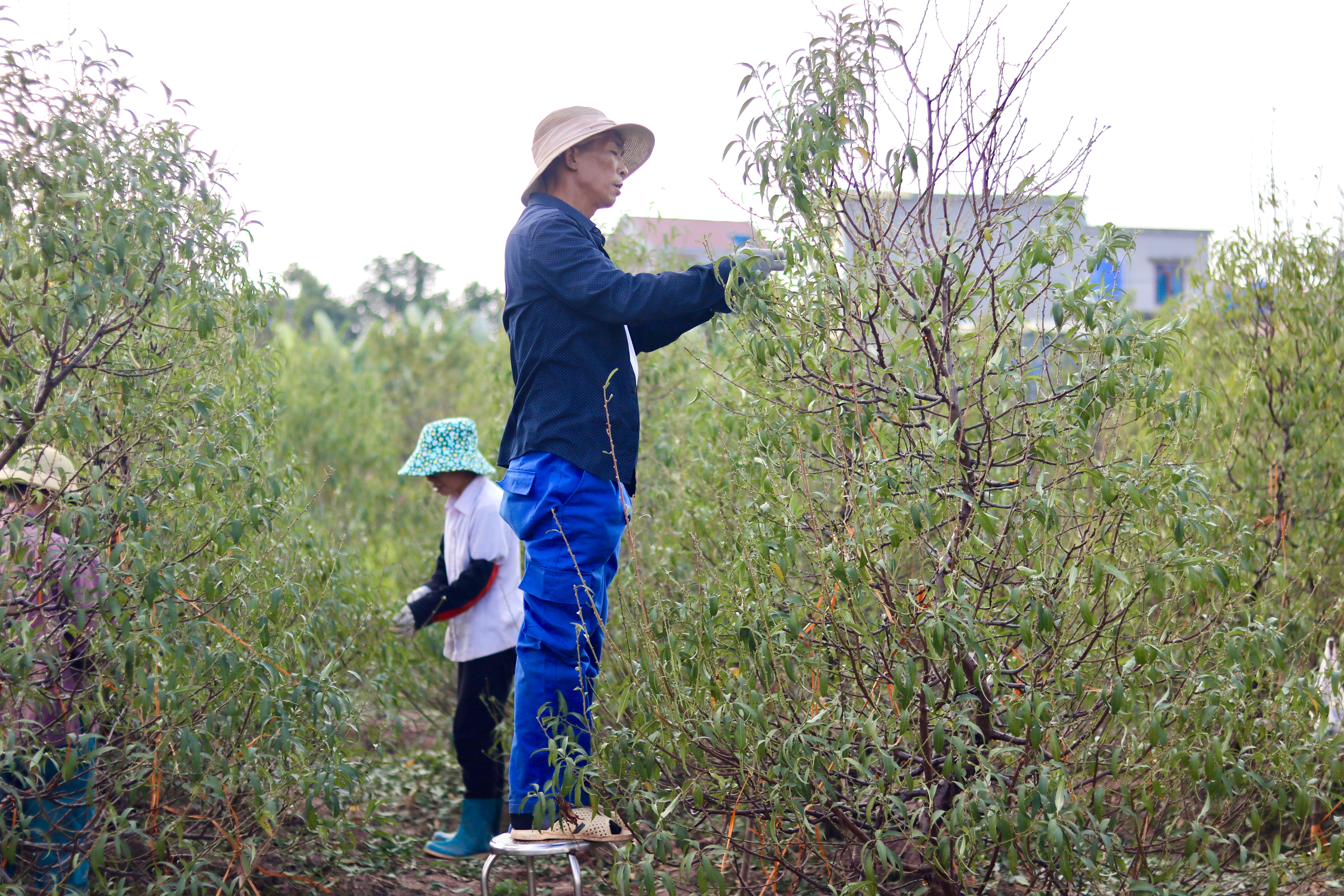 Theo người dân trồng đào xã Minh Tân, việc tuốt lá đào phải được thực hiện đúng thời gian để cây có đủ dưỡng chất nuôi nụ và nở đẹp vào đúng dịp Tết.