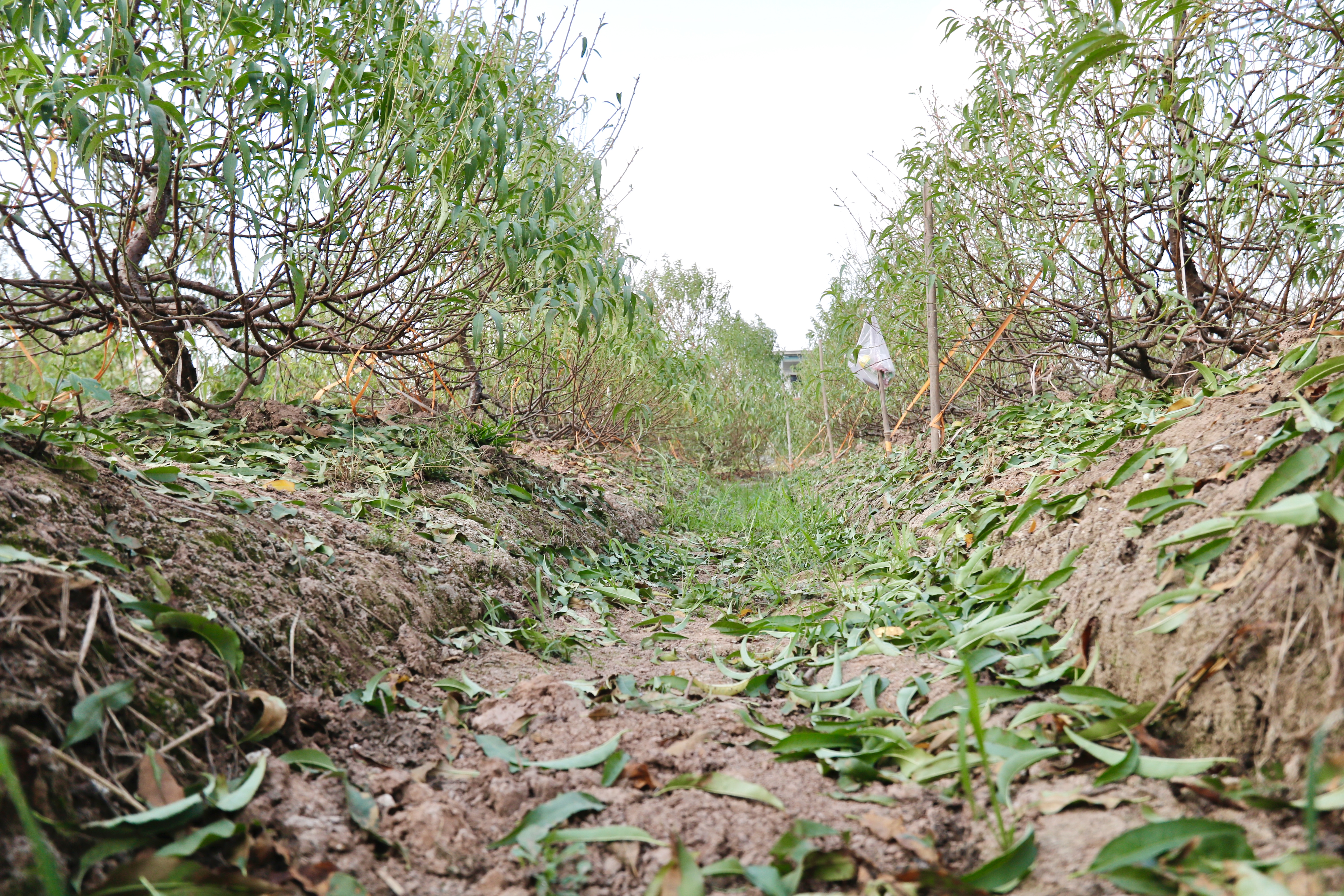 Lá đào sau khi tuốt sẽ được thu gom và sử dụng làm phân bón cho cây.