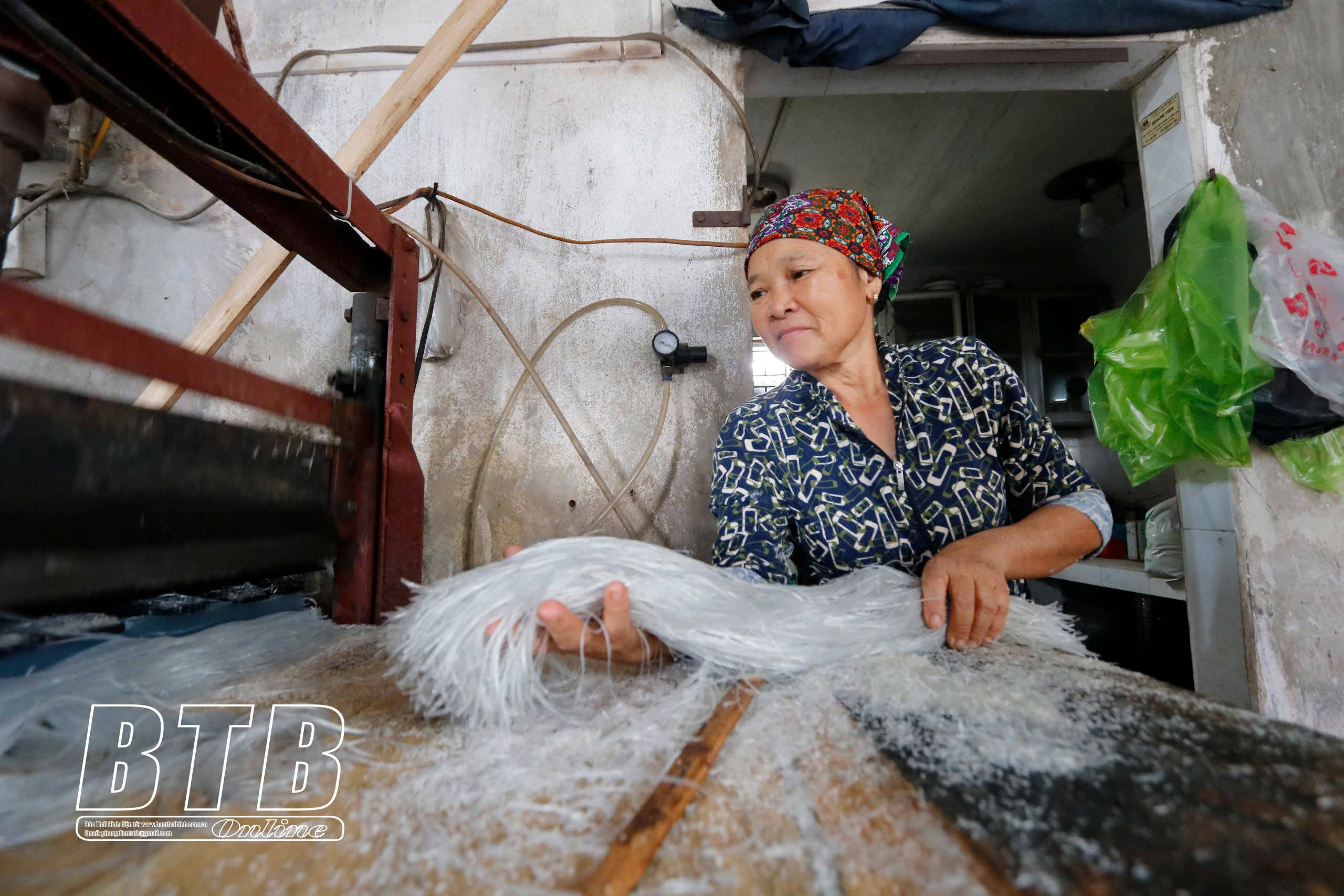 Miến sau khi phơi một nắng sẽ được thu về để cán thành các sợi nhỏ.
