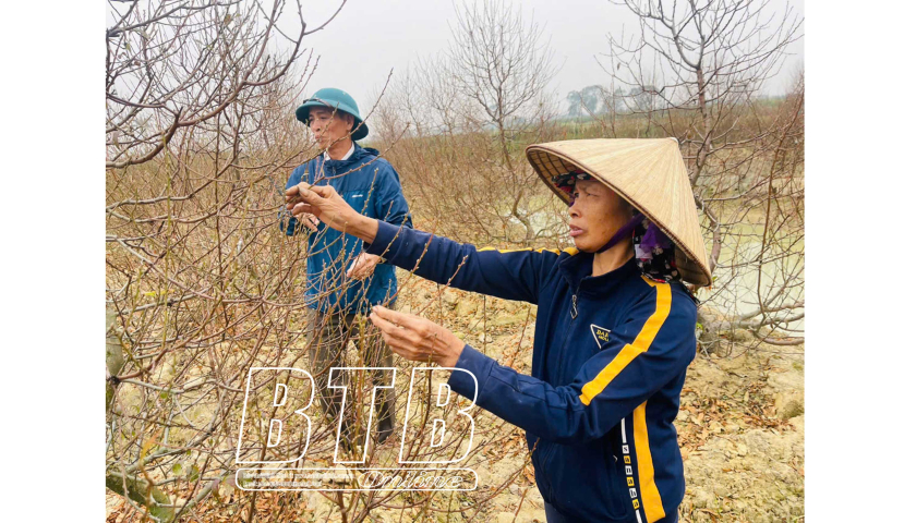 Những ngày cuối năm, đến thôn Đồng Hàn, chúng tôi như được hòa mình vào không khí nhộn nhịp của các chủ vườn đang hối hả chăm sóc, tuốt lá, tỉa cành cho đào. Vườn đào của gia đình bà Trần Thị Liên có diện tích gần 1 mẫu với 200 gốc đào từ 2 năm và hàng nghìn cây tùng, mai vạn phúc, nguyệt quế... Tuy có ảnh hưởng của bão, lũ nhưng nhờ kỹ thuật chăm sóc nên đào và cây cảnh của gia đình bà phát triển tốt. Nhiều thương lái đã đến đặt mua đào với giá từ 1 - 1,2 triệu đồng/cây. Bà Liên chia sẻ: Để đào nở hoa đúng dịp tết, thế cây đẹp, nhiều nụ, chúng tôi phải rất kỳ công. Sau khi tuốt lá, tôi sẽ căn cứ vào thời tiết để có cách chăm sóc, “thúc” hay “hãm” sao cho cây đào có nhiều nụ, nụ to, sắc thắm, bung nở đúng dịp tết. Trồng đào tốn nhiều công chăm sóc, phải tỉ mỉ, tâm huyết, mỗi năm chỉ thu một lần song thu nhập lại cao gấp nhiều lần trồng lúa và một số cây trồng khác. Từ tháng 10 âm lịch, thương lái, khách hàng từ khắp nơi đã tìm về để tham khảo giá, lựa chọn cây và đặt mua. Năm nay đào được mùa nên chúng tôi rất phấn khởi.